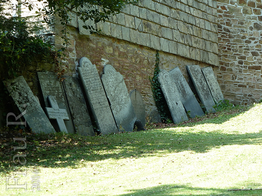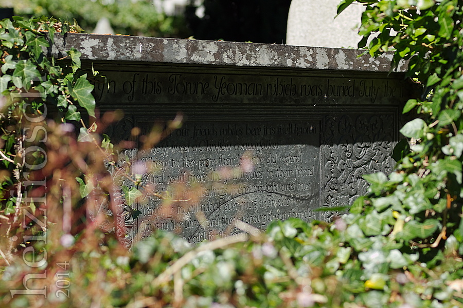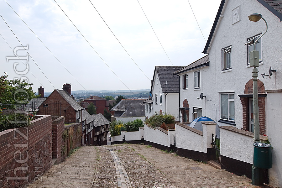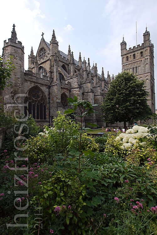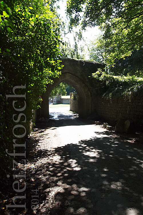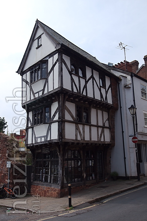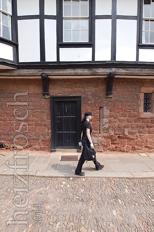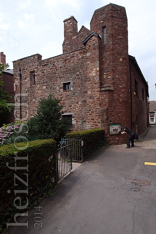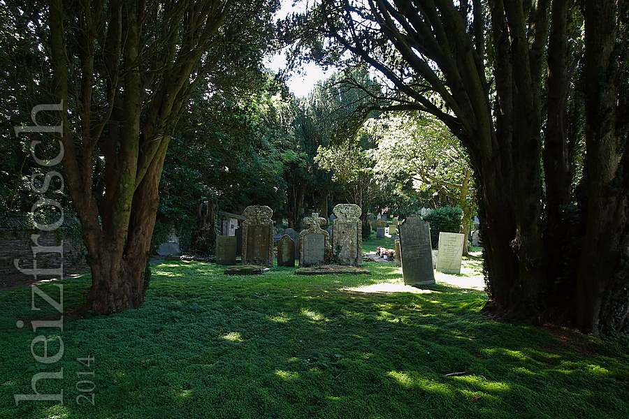 Die Rundreise geht vom Exeter Castle (von dem fast nur noch die Mauer und einige wenige nicht ganz so alte Gebäude existieren) über lauschige und enge Gässchen zur berühmten Kathedrale St Peter. Wir verzichten allerdings auf eine Besichtigung des Gemäuers (zu voll, und mit 6 Pfund pro Person … nunja … Ich behaupte, dass kostenloser Eintritt mit der Bitte um Spenden mehr Einnahmen einbringen würde. Aber das zu diskutieren ist nicht meine Aufgabe.), sondern laufen lieber durch enge Gässchen mit alten Häuschen. Eher zufällig landen wir später am und im Friedhof von St Bartholomew. Ach, geben wir’s doch einfach zu: Wir hatten uns verlaufen! Allerdings liegt die Schuld nicht ausschließlich an unserem Unvermögen, sondern zum großen Teil an der – nicht maßstabsgerechten und ein paar Straßen auslassenden – Karte zur »Mittelaltertour«. Im Ergebnis haben wir 3 Anlaufpunkte der vorgeschlagenen Tour nicht gefunden; dafür aber mehr gesehen, als gedacht. Doch zurück zum Friedhof. Dieser ist nicht mehr in Benutzung, nichtsdestotrotz sind aber noch viele Gräber erhalten, und in den alten Katakomben (durch welche man sich gelegentlich führen lassen kann, ansonsten sind sie verschlossen) wohnen heute Fledermäuse.