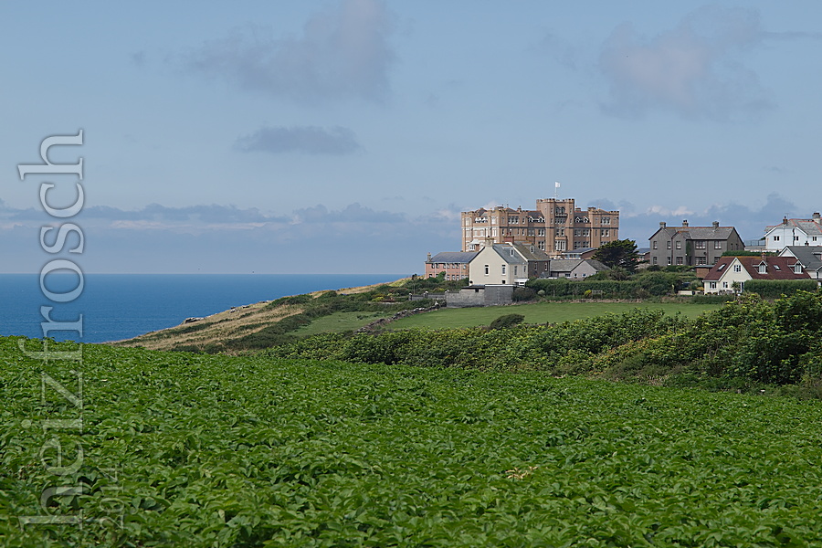 Das Wetter soll auch in den nächsten Tagen schön bleiben, und heute ist es das auf alle Fälle. Kurzentschlossen fahren wir eine kleine Strecke überland nach Padstow. Der Ort wird in diversen Reiseführern angepriesen und ist ein im Sommer touristisch völlig überlaufenes Fischerdorf. Was uns nicht stört, denn wir wollen nur eine Runde an der Küste laufen. Allerdings verschlägt uns Teil Eins der Parkplatzsuche mittenmang in die schmalen Einbahngassen und ins Tourigewölle. Die Chancen, hier jemanden zu überfahren, stehen gut – pro Fahrtmeter bei etwa 10 Seelen und Kleintieren. Frenetisch den Umstand feiernd, dass ich aus dieser Hölle sehr schnell wieder herausfinde, fahren wir im zweiten Anlauf Prideaux Place an, ein altes Gutsherrenanwesen oberhalb von Padstow. Dort soll angeblich ein guter Ausgangspunkt für Küsten- und Landschaftswanderungen sein. Was es dort allerdings nicht gibt, ist ein Parkplatz, denn den kennt wohl nur unser Dumont-Reiseführer. Dafür aber mäandert eine verführerische kleine Straße weiter in Richtung Küste – und zwar bis zu dem Punkt kurz hinter Crugmeer, wo die Weiterfahrt nach Trevone einfach mal so von ein paar »Road Closed«-Pollern vereitelt wird. Klasse. Also wieder zurück nach Padstow, und dort stellen wir uns für zwei Pfund Gebühr auf das Feld eines Bauern. Passt. Im Abwandern ereilt uns noch ein lauter Pfiff nebst der Ansage, dass wir uns einfach links halten sollen. Danke! :)