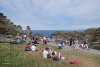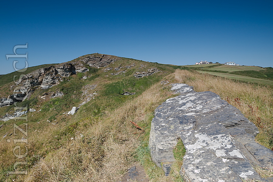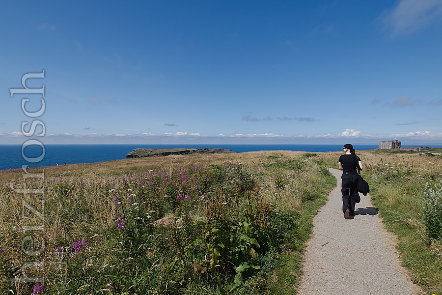 Die Artillerievorführung stellt sich als Demonstration einer etwas zu groß geratenen Armbrust auf einem Stativ heraus, durch deren ersten Schuss beinahe eine Möwe ihr Leben aushaucht. Wahrscheinlich sind wir durch die inbrünstigen Darstellungen mittelalterlichen Brauch- und Kampftums in Dänemark und Schweden zu verwöhnt. Wirklich mitreißend sind die »Fighting Knights« nicht. Aber die anwesenden Kinder haben Spaß. Wir halten den Eintrittspreis von 7,10 Pfund pro Person für zu hoch. Danach haben wir nach nunmehr vier Stunden doch genug, und im Häuschen wartet noch immer ein Teil des Schokikuchens. Deshalb setzen wir uns berghochzu aus der Festung ab und latschen an der Kirche vorbei über einige Trampelpfade nach Hause, ohne nochmal durch Tintagel zu müssen.