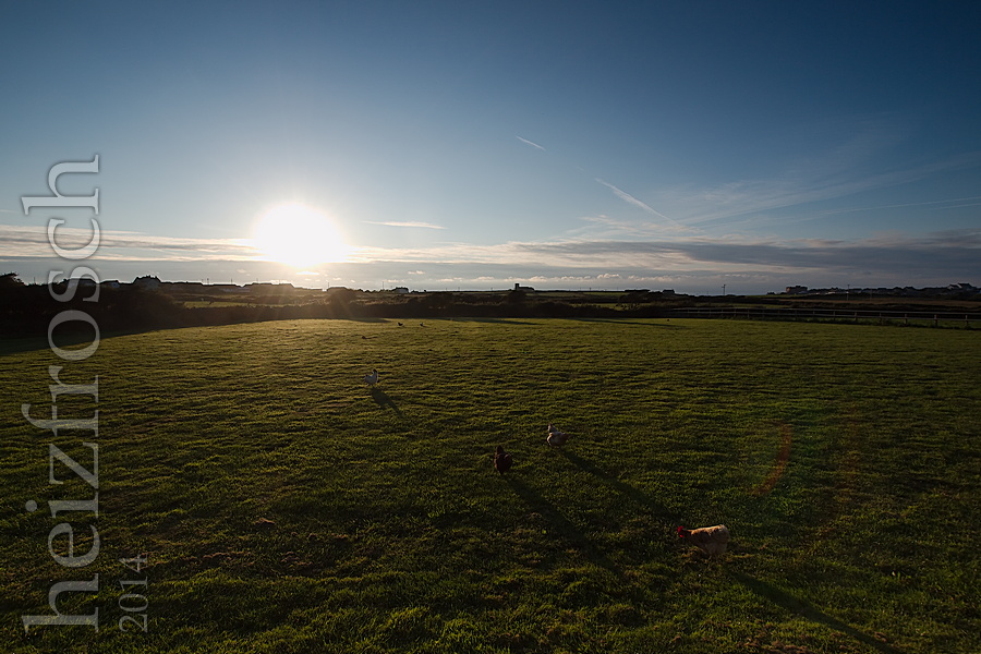 Der Rest des Tages gehört wieder der Gemütlichkeit, also den Büchern, Knabbereien, Heißgetränken auf der Terrasse und dem netten Gegacker der Hühner auf der Wiese hinter der Mauer, die sich sehr über ein paar Kekskrümel gefreut haben.