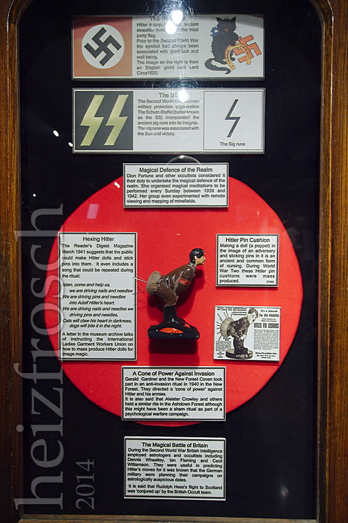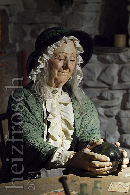 Boscastle ist schnell gefunden, ebenso ein Parkplatz und der Weg zum Museum. Wir verbringen knapp zwei Stunden in dem eigentlich gar nicht so großen Gebäude, aber es gibt unendlich viel zu lesen und zu bestaunen, Wissenswertes wie Absurdes. Mein Favorit: Hitler-Verwünschungspuppen, denen man Nadeln in den Hintern stechen konnte. Großartig! Und hilft vielleicht heute noch bei Diktatoren und Kriegstreibern … Für mich war besonders interessant, dass der »heidnische Aberglaube« auch in der katholischen Kirche weiterlebt. Und zwar in den Votivgliedmaßen aus Wachs wie sie noch jetzt in katholischen Kirchen zum Dank für wunderbare Heilungen aufgehängt werden bzw. geweiht werden, damit der Kranke genesen soll. Na, wenn das nicht dunkelster Aberglaube war oder ist … In Cornwall war die Naturheilkunde der sog. Weisen Frau nie in Vergessenheit geraten. Heute beschäftigen sich wieder mehr Menschen mit »Hexerei«, was allerdings manchmal den Eindruck des Auslebens eines Hangs zu extrovertierter Kleidung und rauchgeschwängerten Ritualen macht. Womit sich wieder Kreis zur katholischen Kirche schließt ;-) Ich jedenfalls fand es nett, dass es einen »Besenparkplatz« vor dem Museum gab. Und ich würde fast behaupten, dass Boscastle eine Inspiration für Terry Pratchett und »Lancre« war.