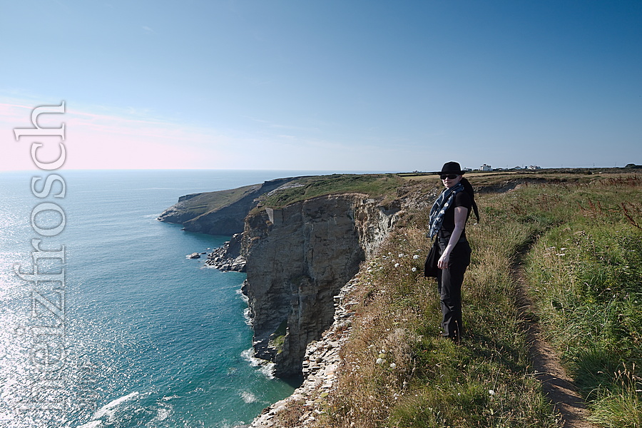 Auf dem Hügel angekommen, besuchen wir St Materiana’s Church und den umliegenden Friedhof. Alles teilweise sehr alt und sehr verwittert – sehr schön! :) Hernach wandern wir ein bisschen am Rand der Steilküste herum, und das ist der Moment, in dem ich weiß, dass ich hier richtig bin und sich die Fahrt gelohnt hat. Meine Fresse, ist das ein Ausblick … Die spröde Natur in Cornwall ist wirklich sensationell. Und ganz selbstverständlich jagen Falken und zwitschern sich Schwalben Nachrichten zu.