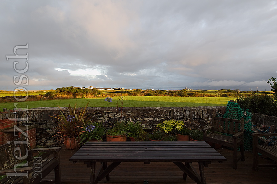 Achso, was das Wetter angeht: Ich spurte abends kurz nach 18 Uhr ins Dorf, um die Pasties zu holen. Und ich schwöre, dass es erst eine Minute, nachdem ich wieder im Haus bin, anfängt zu schütten. Was den Zähler für die Tage, an denen uns kein Wasser von oben erwischt hat, um einen Schritt nach oben treibt. Für morgen und die folgenden Tage sieht die Vorhersage aber nicht allzu prächtig aus, es wird wohl häufig regnen; vielleicht das ein Zeichen.