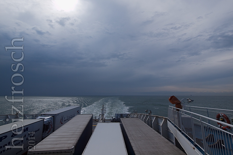 So, es ist soweit: Ein letztes Mal drehen wir den Schlüssel zum Cottage um, und dann begeben wir uns auf die erste Etappe gen Heimat. Das Wetter spielt halbwegs mit, und so schaffen wir es nach etwas mehr als sechs Stunden Fahrt und mit etwas Glück, in Dover sogar eine Fähre eher abzulegen als geplant und dafür in Calais mehr vom Abend zu haben. Die gewonnene Zeit nutzen wir für ein Abendessen im Hotelbistro, in dem eine sehr nette Kellnerin standhaft so tut, als spräche sie kein Englisch – der Plan dahinter muss sein, uns ein bisschen Französisch beizubringen, denn merkwürdigerweise verstehen wir zwar nicht, was sie sagt, bekommen aber, was wir wollen, geben offenbar die richtigen Antworten (Guten Abend, bitte, danke, Erdbeereis usw.) und werden freundlich in die Seite geknufft. Ich bin nach der etwas schlauchenden Fahrt sowie zwei »1664« nicht mehr in der Lage, mir auch noch die französische Grammatik anzueignen, sondern falle stattdessen ziemlich schnell schachmatt ins Bett.